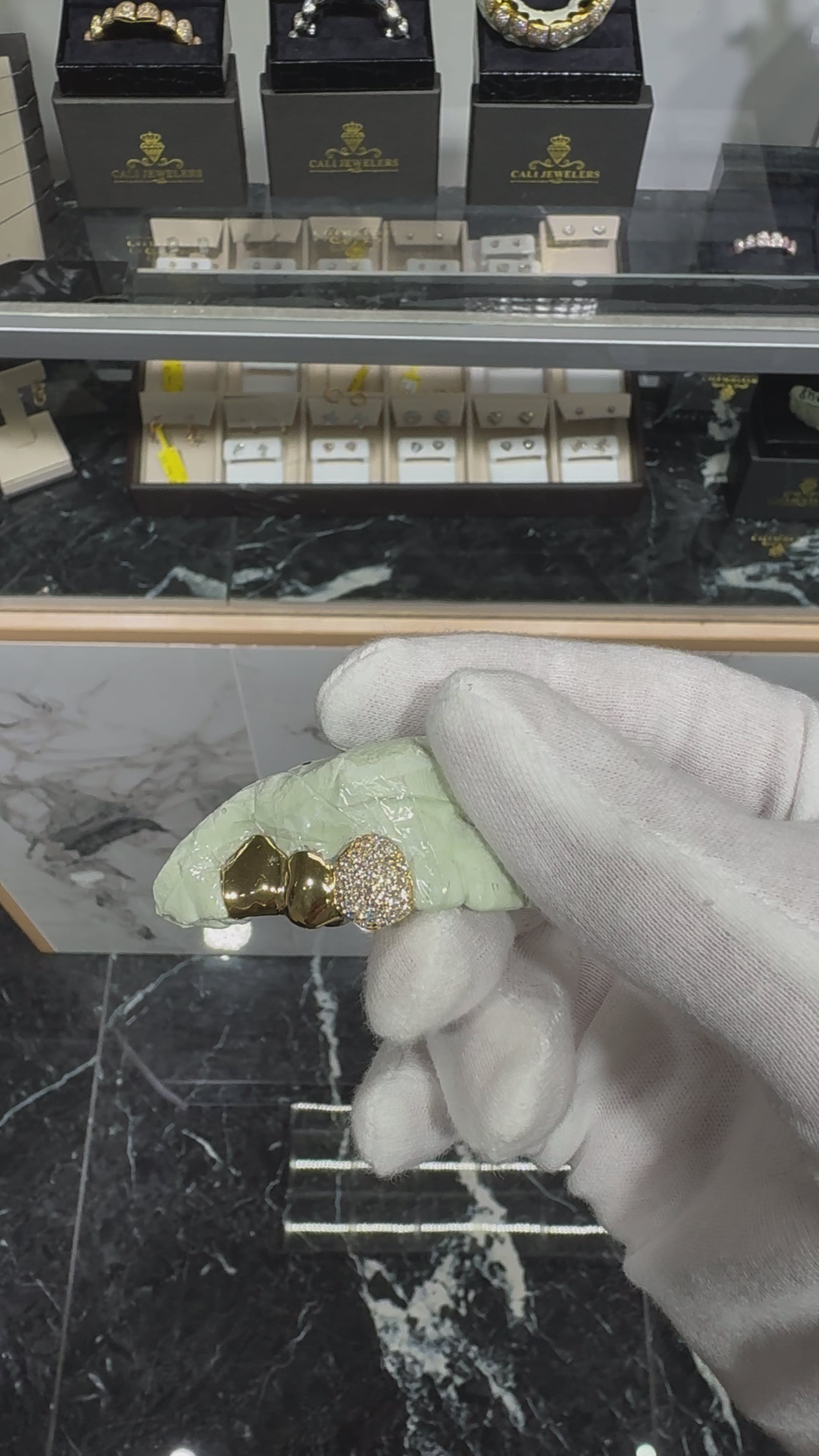 Custom Two Tone Diamond Dust Diamond Cuts Gold Grill