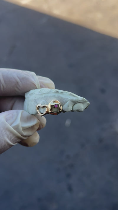 Cute meets custom with our 2 Piece Hello Kitty Grillz featuring an Open Heart Spacer—the perfect blend of playful charm and high-end drip. This one-of-a-kind grill set features a detailed Hello Kitty design on one tooth, paired with a delicate open heart spacer in the middle, making it a sweet and stylish expression of your personality. Whether you're going for adorable, bold, or both, this grill is all about making your smile unforgettable.