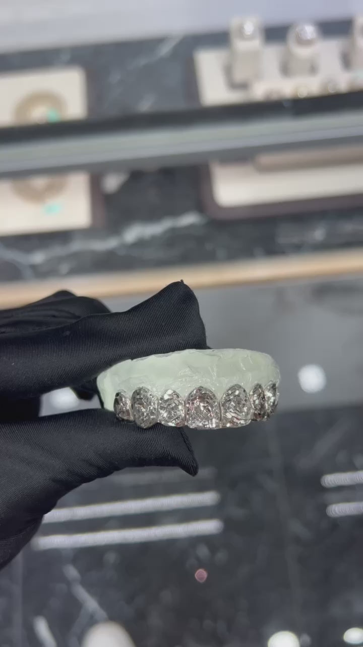 Custom-made from your precise mold, the grillz offer a flawless fit, ensuring comfort, durability, and an unbeatable look. Whether you’re looking for subtle luxury or a bold statement, these Circle/Rose Cuts Solid Custom Grillz bring your style to life in ways that words alone can’t describe.