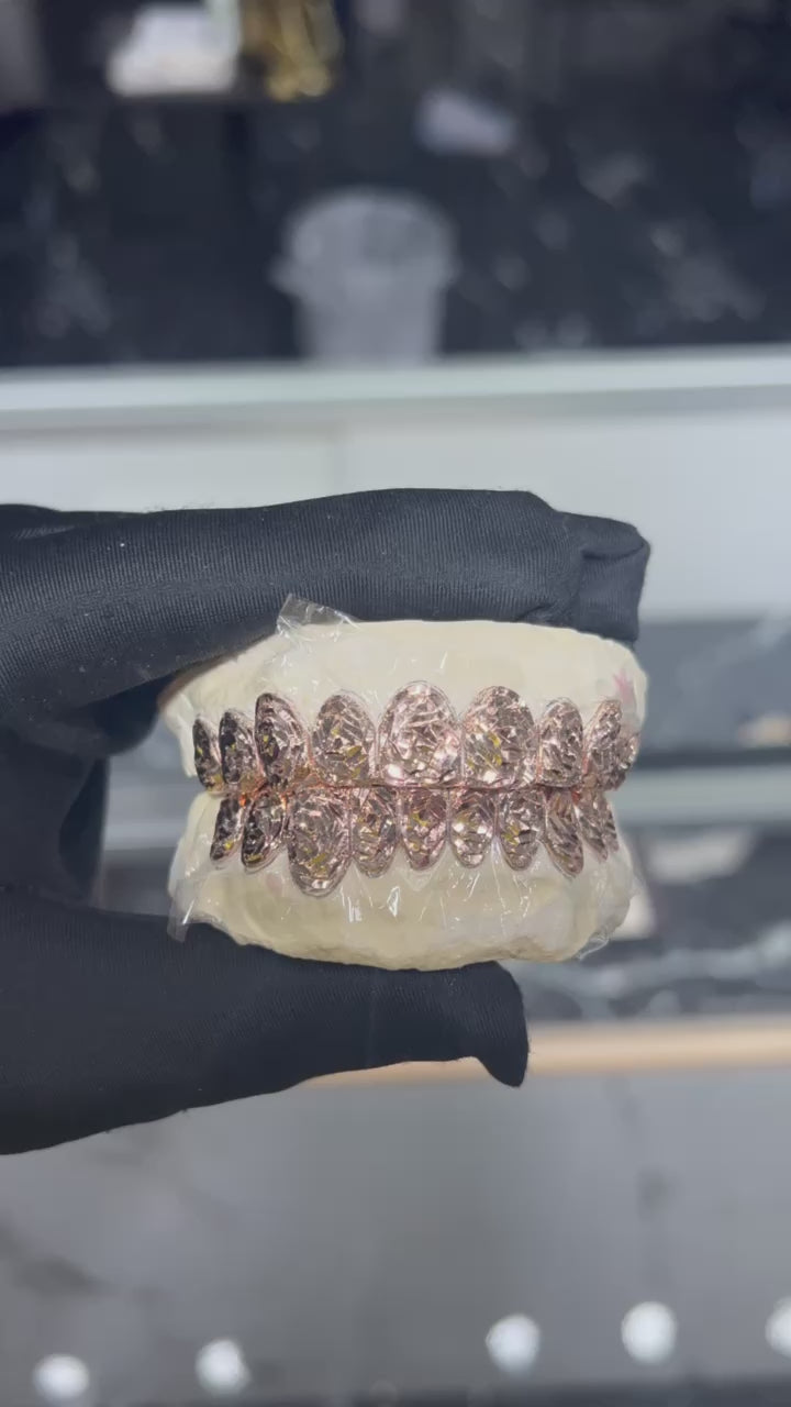 The circle cuts add a unique, geometric texture, while the rose cuts provide a vintage-inspired, flower-like pattern that’s both classic and modern. This combination of detailing creates a grill with depth and sophistication, making it the perfect accessory for those who appreciate both artistry and style.