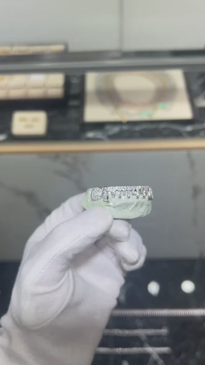 Flood your smile with brilliance in our Custom 8 Piece Fully Iced Diamond Drip Grillz — the ultimate fusion of luxury and bold design. Each of the 8 teeth is fully iced out with hand-set natural diamonds, creating a blinding shine that speaks volumes. Finished with the signature diamond drip effect, this grill gives your smile a flowing, high-drip aesthetic that commands attention from every angle.