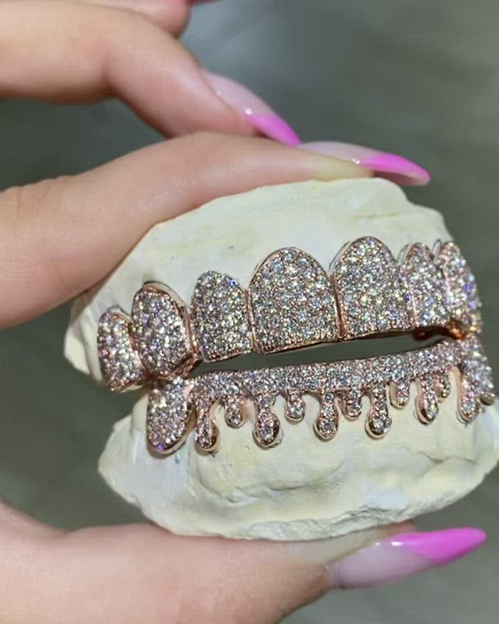 Stand out, shine harder, and flex your style with the Custom 8 Piece Fully Iced Diamond Drip Grillz — because ordinary is never an option.