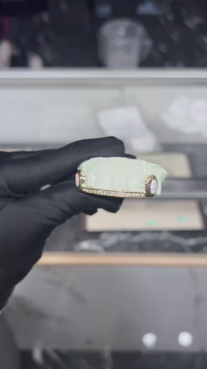 Crafted to your exact mold, these grillz fit perfectly and comfortably, offering both style and security. Whether you want a subtle, sophisticated shine or a bold, head-turning statement, the Diamond Bar Grillz with Opal Fangs are made to elevate your look to the next level.