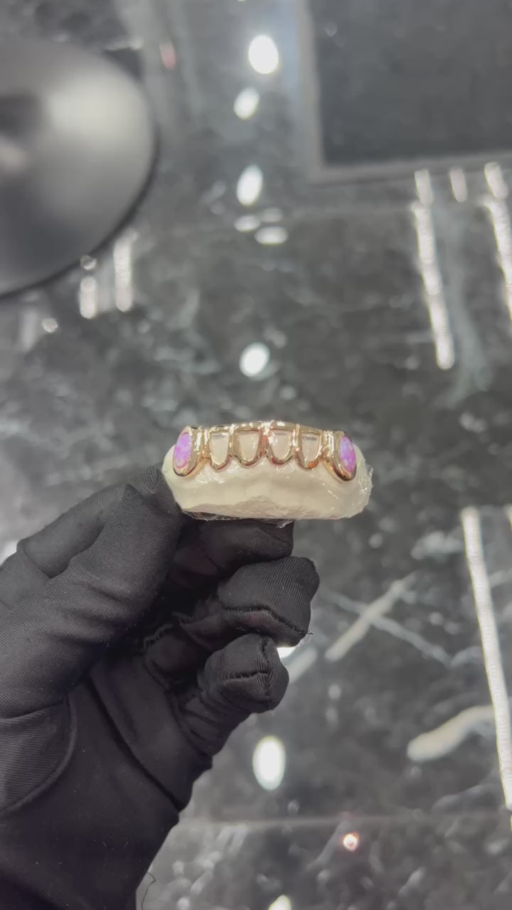 Custom Open Face Grillz with Opal Fangs