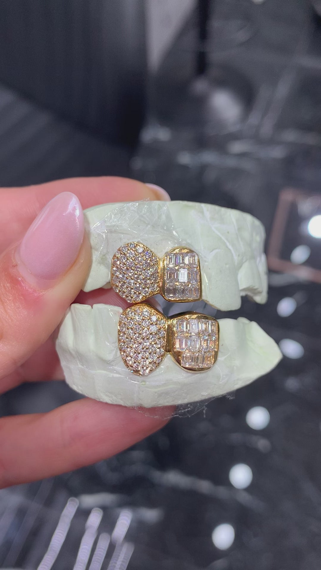 Make a fearless statement with our Custom Round Diamond Zigzag + Emerald Tooth Grillz—a true masterpiece for those who move different. This grill features a unique zigzag design iced out with round-cut diamonds, delivering crazy shine and a bold, sculpted look. To take it over the top, a single emerald-set tooth adds a vibrant pop of luxury green—bringing color, character, and pure flex energy to your smile.