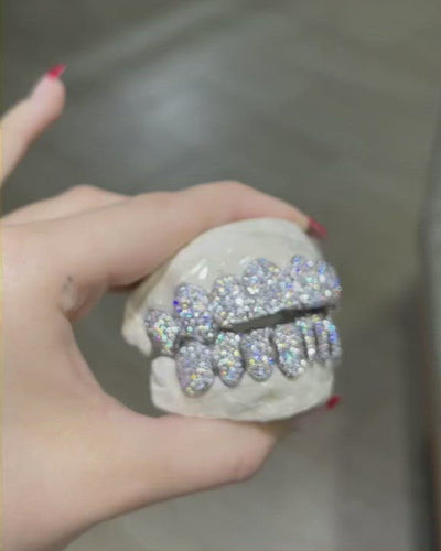 Each grill is made from your mold for a flawless custom fit and showcases the brilliance of SI1 clarity diamonds β offering noticeable sparkle with natural character. The zigzag/honeycomb setting stacks the stones tight, catching light from every angle.
